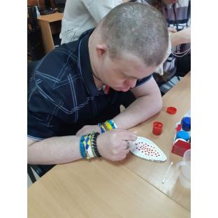 Світлі традиції об’єднують та надихають! Під час спілкування учасники мали змогу проявити свою творчість та фантазію, створюючи святковий декор. Молодь із захопленням працювала над шиттям декоративних великодніх яєчок, підбирали кольори матеріалів, фарбували, прикрашали вироби квітами, стрічками, та іншими декоративними елементами. Така творча робота сприяла розвитку дрібної моторики, уважності та посидючості.