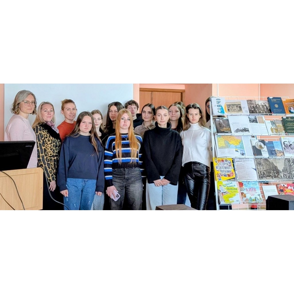 23 квітня 2026 року до конференц-зали бібліотеки на історичну годину "Нація в історії: постать Михайла Грушевського" завітали студенти групи П-21 ВСП " Житомирський торговельно - економічний фаховий коледж ДТЕУ" з викладачками англійської мови Іриною ДЕМЯНЧУК та Аліною ЧЕРНИШ.