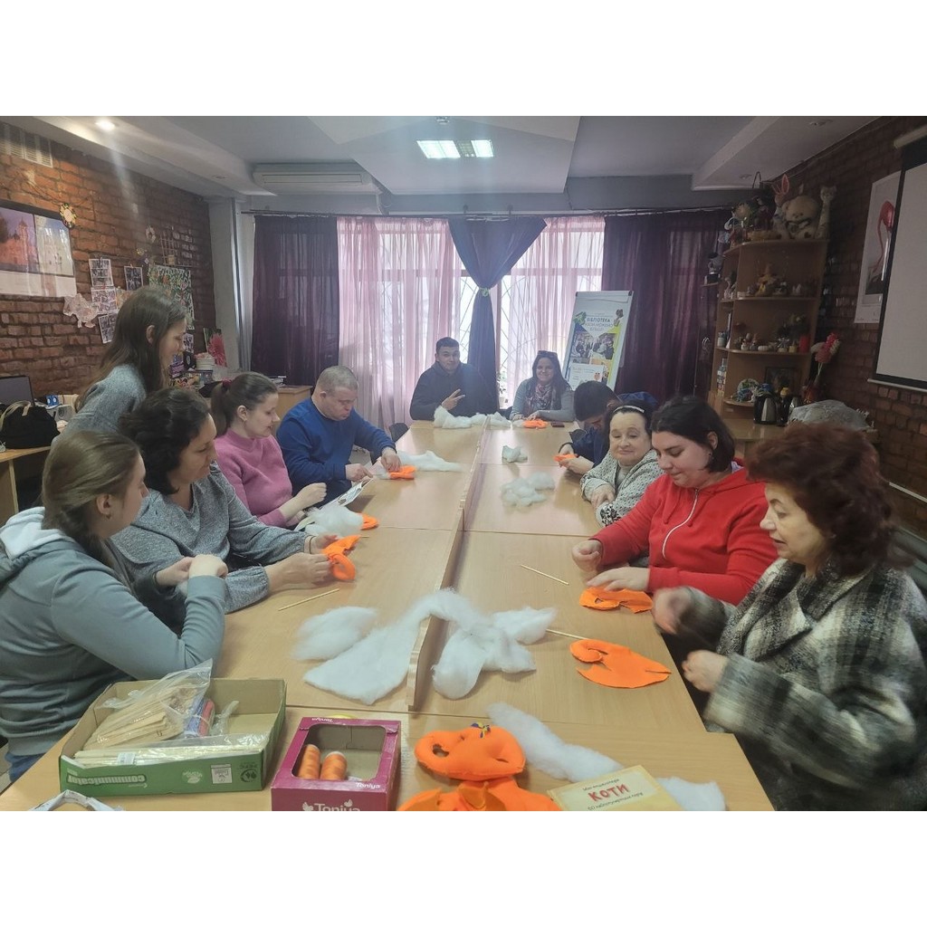 На початку заходу говорили про важливість книги у житті кожного з нас, що література може стати справжнім антистресом - допомогти заспокоїтися, відволіктися і знайти внутрішню гармонію. Відвідувачі обмінювались враженнями та емоціями від книг з якими познайомились завдяки нашій бібліотеці. А ще згадували про тих, хто часто поруч із нами під час читання - наших улюбленців, які додають затишку цим особливим моментам. Учасники заходу - мали змогу поринути у теплу та натхненну атмосферу рукоділля. Під час заняття вони власноруч створювали символічні талісмани - милих текстильних котиків, шиючи вироби з тканини, акуратно наповнювали їх синтепоном, малюючи мордочки та прикрашаючи патріотичною стрічкою, додаючи кожному котику індивідуальності та особливого характеру.